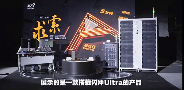 星云150V 400A模組充放電測試系統(右一)、星云10V300A電芯充放電測試系統(右二)出現在萬向一二三12C超高倍率“閃充Ultra電池”發(fā)布會視頻中