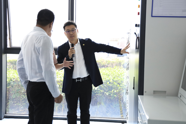 星云股份副董事長(zhǎng)兼總裁劉作斌帶領(lǐng)客戶(hù)嘉賓參觀、體驗(yàn)電動(dòng)自行車(chē)、電動(dòng)摩托車(chē)電池檢測(cè)